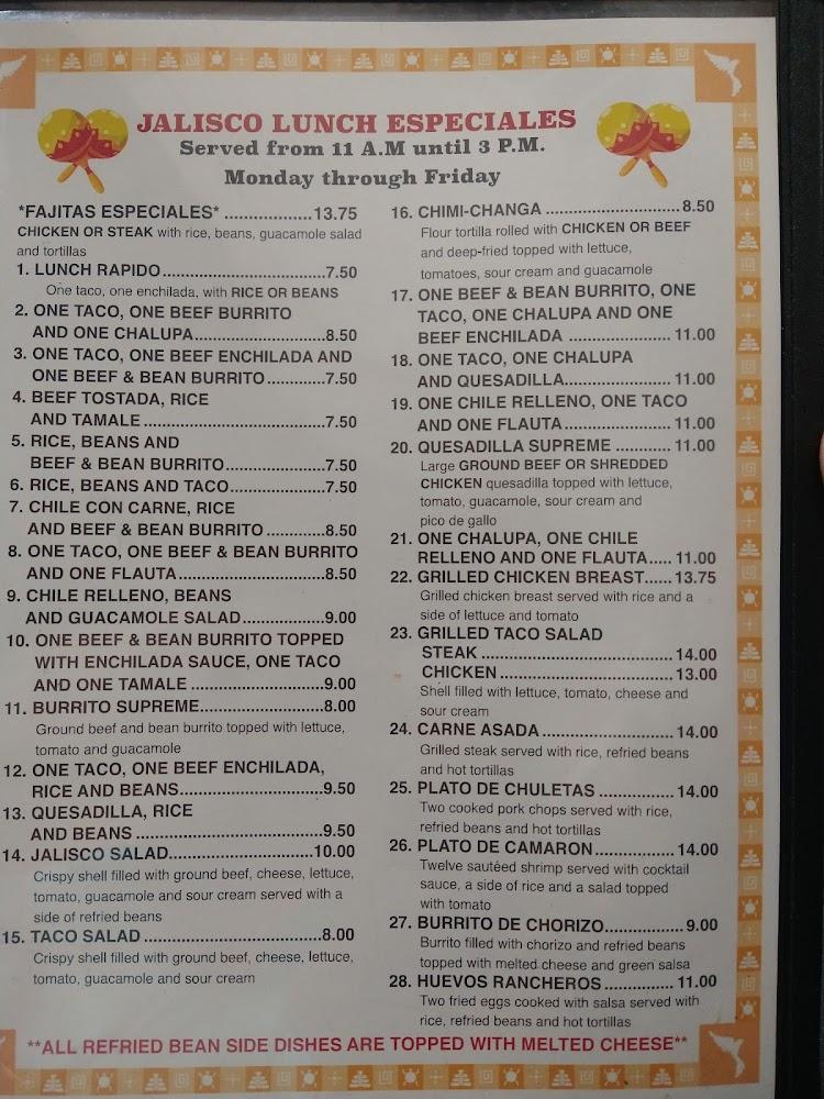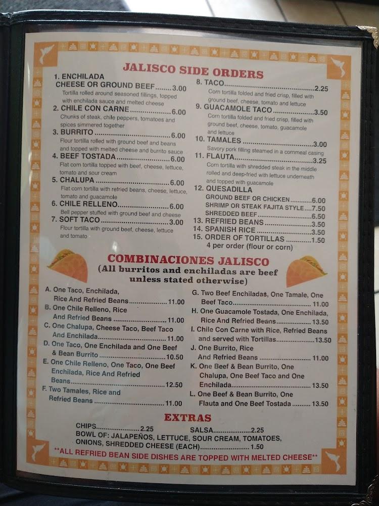 The menu at Jalisco features a variety of traditional dishes. Highlights include tacos al pastor, enchiladas, and a range of combinaciones that cater to different tastes. A kid’s menu offers options for younger diners, making it a family-friendly spot.